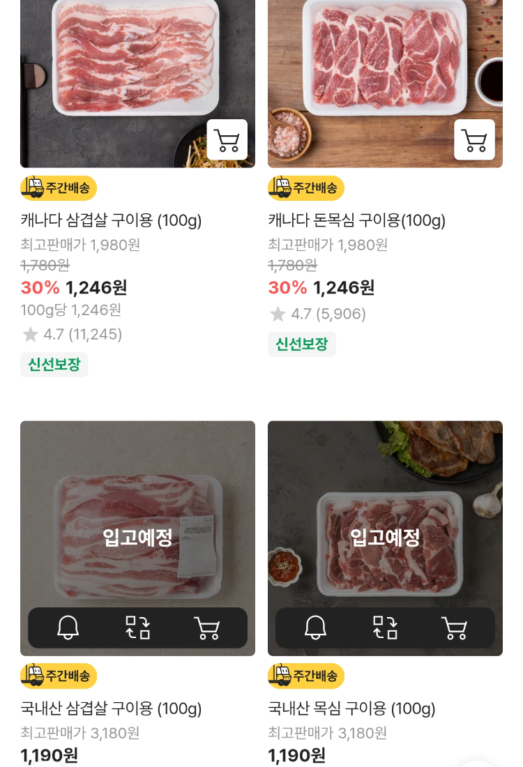 • 삼겹살·목심: 국내산 60% 할인 → 100g당 1,190원, 수입 냉장 100g당 890원 (7/5 한정)