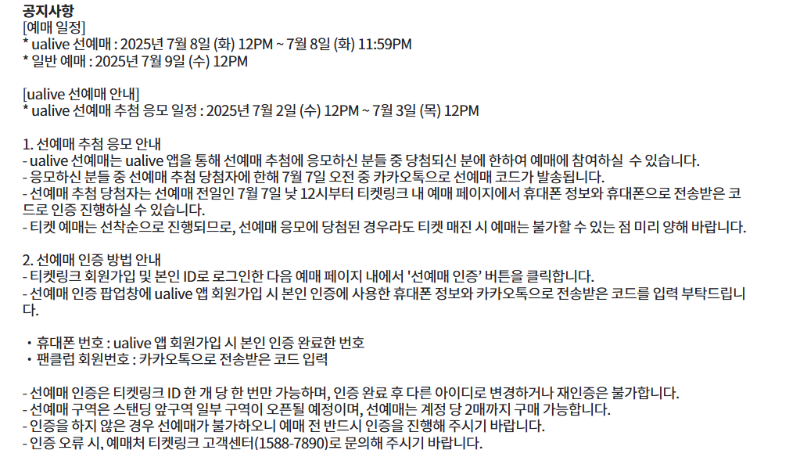 - 입장팁: 스탠딩권은 현장 조기 입장 필요 → 안전 수칙 준수