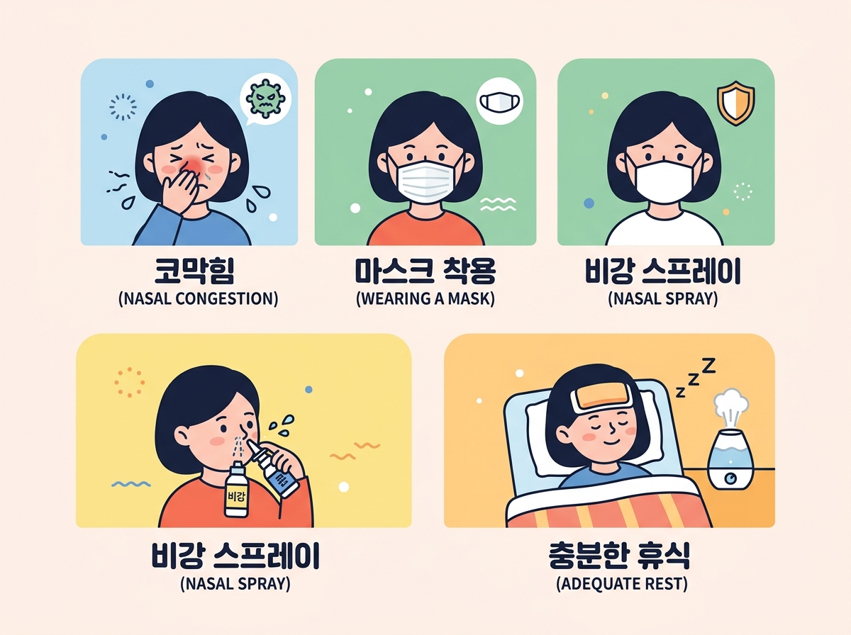 후각 저하 역시 흔하게 나타납니다. 냄새를 잘 맡지 못하거나 음식 맛이 밋밋하게 느껴질 수 있습니다. 심한 코막힘으로 밤에 입으로 숨 쉬게 되면 입마름과 수면 질 저하가 동반되며 아침 피로감도 커집니다.