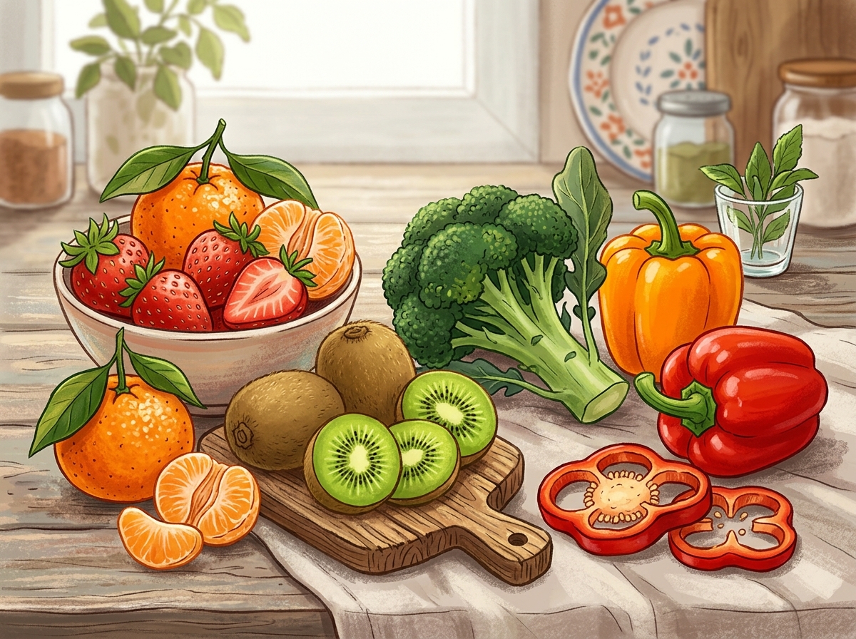 비타민 C가 풍부한 과일과 채소는 면역 유지에 도움이 됩니다. 귤, 키위, 딸기, 브로콜리, 파프리카 등은 비교적 부담 없이 섭취할 수 있습니다. 다양한 채소를 꾸준히 먹는 식습관이 회복기에 유리합니다.
