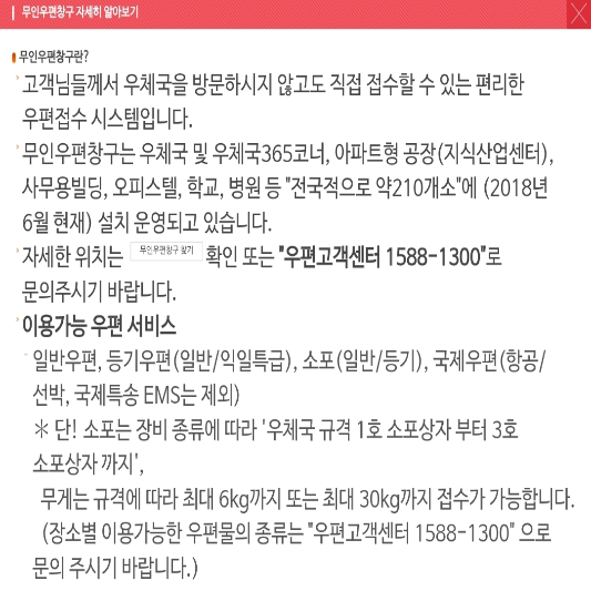 우체국 무인 우편 창구 안내 이미지(우체국 어플 참고)
