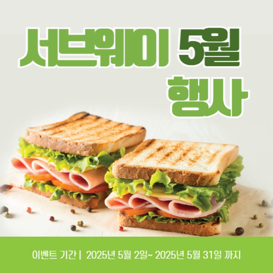 서브웨이 5행사는 202551일부터 531일까지 달간 진행됩니다.