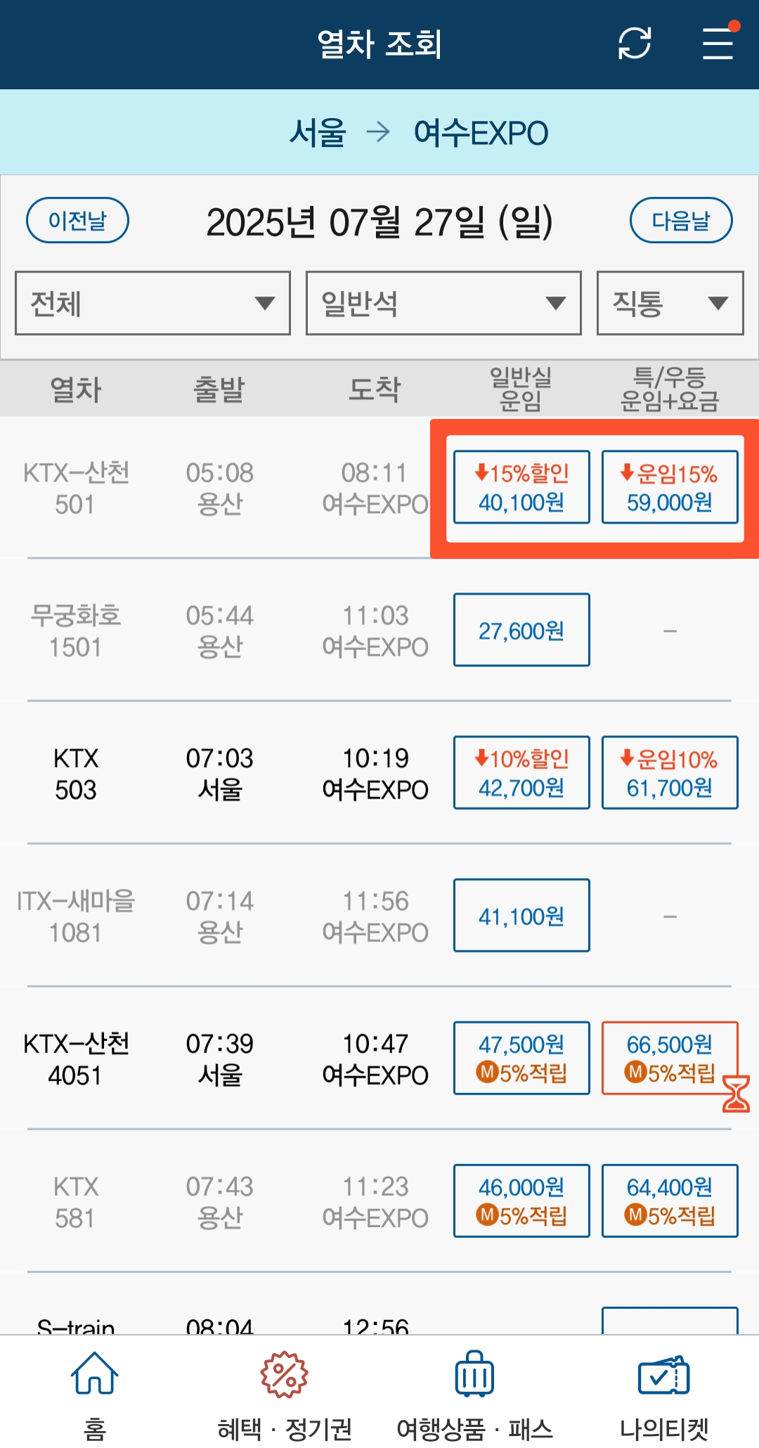 여수행 KTX 할인 적용 팁은 다음과 같습니다.